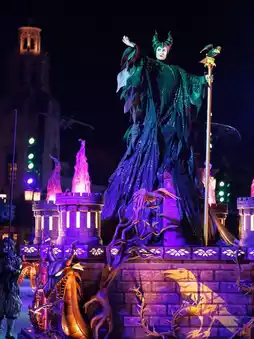 - 17:30 Secure parade spot! For the 7:15 PM villain parade, go to the middle section of “Mickey Avenue” at 5:30 PM, sit on the curb with a folding stool, sitting in the back with a cushion still gets full shots and it’s not crowded! Use video mode, the villain costumes are amazing in detail!