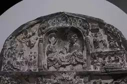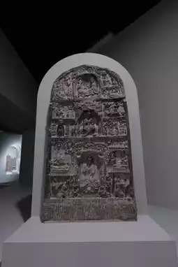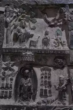 The Buddha Story Stele is a stone carving artwork in the Maijishan Grottoes, featuring 14 key life stories of Buddha Shakyamuni from birth to nirvana, carved in panels in a style similar to a comic strip. These include "Entering the Womb on an Elephant"—depicting Shakyamuni transforming into a white elephant and entering the womb of his mother, Queen Maya; and "Parinirvana under the Sala Trees"—showing the scene of Shakyamuni’s passing (nirvana) under the twin sala trees.