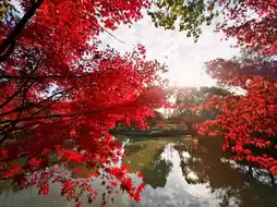 💖 The entire Autumn Scenery Garden is filled with red maples in various shades: classic maple red, brick red, dark red, sunset red, vermilion, scarlet... layered and intertwined. The afternoon sunlight at two or three o’clock filters through the maple leaves, making each leaf glow like jade, and the light casts beautiful shadows on the ground. The maple trees by the lake reflect on the water, dyeing the surface a rosy red. Such a beautiful scene is intoxicating and makes the trip worthwhile.