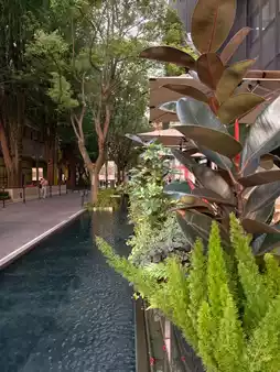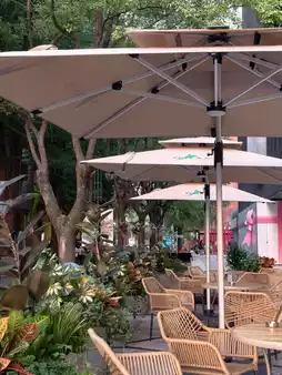 Various trendy shops are dazzling, and when you get tired of walking, there are outdoor seats by the river. Enjoy a drink in the breeze, look up at the tree shadows flickering with light, and in the distance, the warm glow of red-walled buildings—this atmosphere totally gives off an "urban escape" feeling!