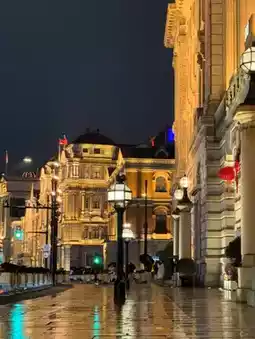 Plane tree shadows wrap around old Western-style buildings. After browsing trendy BM stores, grab a hot coffee. Stand at the “Wukang Building corner” to shoot a back view, with warm streetlight casting a glow—naturally exuding “Shanghai’s chic bourgeois vibe.”