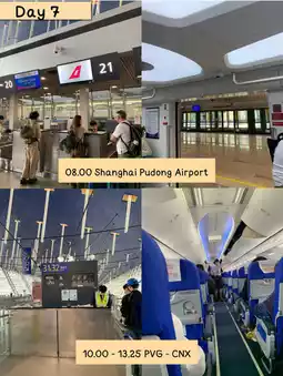 14.55 -19.55 เดินทางจากสนามบินเชียงใหม่ ไปสนามบินเซี่ยงไฮ้ผู่ตง (CNX - PVG)