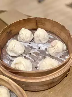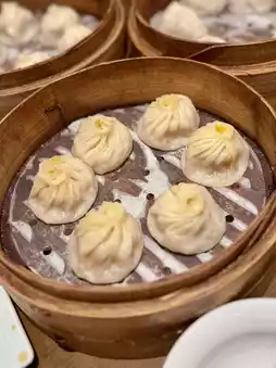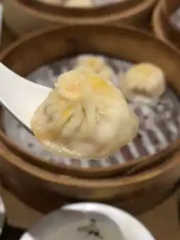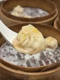 As an additional order, try their signature Crab Roe Soup Dumpling. Unlike regular xiaolongbao, this oversized soup dumpling, about the size of a palm, is filled with crab essence. Its unique way of eating involves inserting a straw to sip the hot soup directly from inside. Be cautious, as it's extremely hot and can cause burns.
