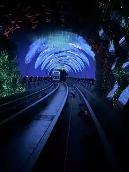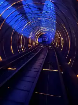 ✅ The ride takes about 10 minutes to reach the other side. It's a unique experience, imagining yourself passing under the river. There are beautiful laser lights along the way, which is quite exciting. However, it's quite expensive because the ride isn't long. If I were to recommend it, it's a must-see for anyone visiting. ✨