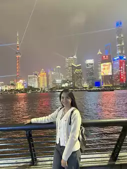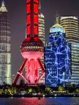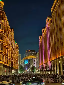 🌙 At night, you can enjoy the beautiful lights, the view of the buildings, and the laser light show. However, the weather is cold and crowded, making it difficult to fully explore the area due to the large crowds and traffic congestion.