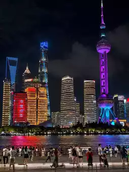 2. The Huangpu Riverfront, with the Pearl Tower and numerous tall buildings across the street.