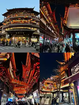 Be sure to capture the reflections of the buildings near the Nine-Bend Bridge (九曲橋) on the pond. The serene reflections on the water make for the perfect photo spot. 📸 While the garden itself closes at night, the surrounding streets remain quiet, offering a tranquil charm distinct from the bustling Bund night view. It's also a great place to enjoy some street snacks or relax at a teahouse.