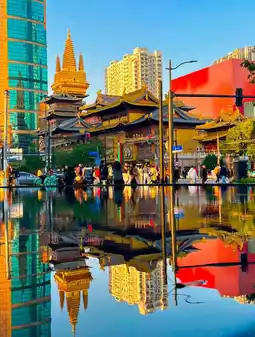 Jing'an Temple, an ancient Buddhist temple in the heart of Shanghai, reflects the charm of traditional Chinese architecture. The main temple, courtyard, and ornately decorated temple halls offer a tranquil atmosphere amidst the surrounding modern skyscrapers, creating a unique "old meets new" image. This temple is a sacred spot where tourists and locals come to pray or pay their respects. Visitors are advised to dress modestly and visit during the morning or afternoon to experience the tranquility and capture beautiful photos without the crowds. There are also small shops selling incense and souvenirs around the temple grounds, perfect for exploring.