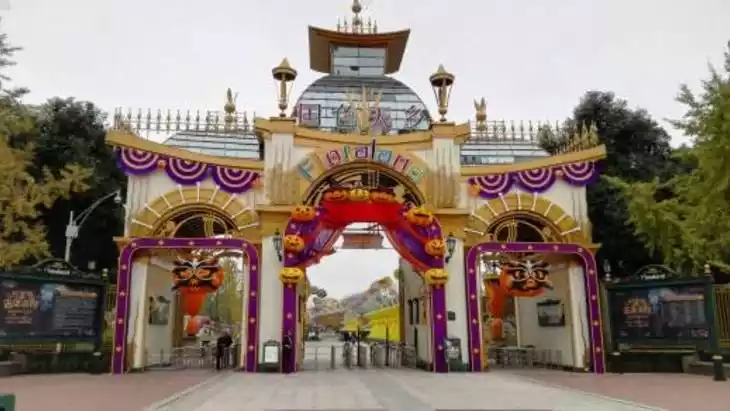 Entering the Gardens of Imagination in the evening feels like stepping into a world of playful ghosts 👻. The entire park is adorned with orange and purple lights, with the Enchanted Storybook Castle glowing in the background. A gentle breeze carries eerie music through the air. Kids dressed as superheroes and princesses run around, couples hold hands for photos, and the smooth pathways make for easy strolling. The scent of caramel popcorn and roasted pumpkin wafts through the air 😋. While the crowd is large, it’s well-organized by staff, creating a fun, family-friendly atmosphere that’s not too scary for young children.
