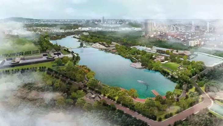 The temple grounds are shady, surrounded by large trees and a small lotus pond, perfect for strolling.
