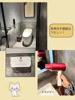 The room was conveniently equipped with two sinks, a bathtub, and a separate private shower room, and the toilet with a bidet function, among other small details, were also very comfortable!