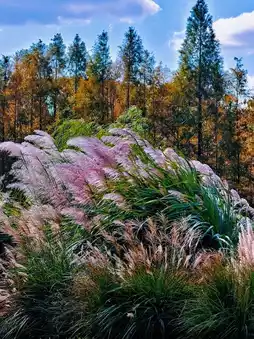 The red, yellow, and green intertwined woods and swaying reeds