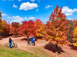 In the height of autumn, Maple Leaf Island in Langxia Town, Jinshan welcomes its most beautiful season. Strolling along the forest paths of Maple Leaf Island, you are surrounded by colorful maple leaves in red, yellow, and green, intertwining like a natural palette. The maple forest here is vast, especially the lakeside scenery, which is breathtaking. The reflection of the maple leaves in the lake looks like a fairy tale world.