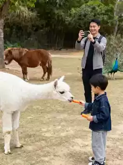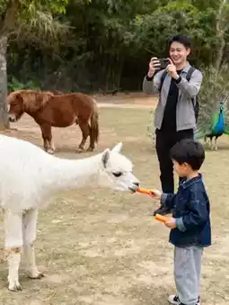 Buy a basket of carrots for 20 RMB, alpacas will come over to eat, the dwarf horse is very gentle and can be ridden (30 RMB/lap), plus a peacock display surprise!