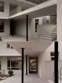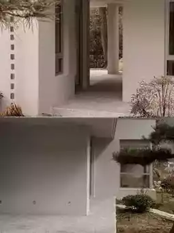 →Light and shadow variations of the rammed earth corridor