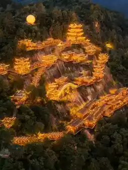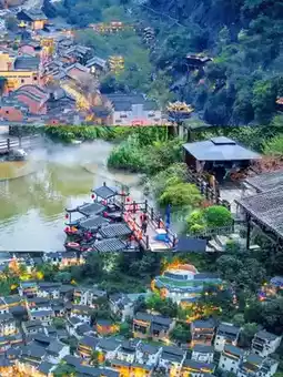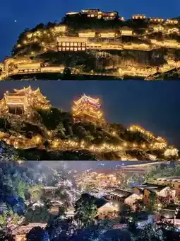 📝Wangxian Valley, with an investment of 4.6 billion CNY, spans 6.1 square kilometers. Blending natural landscapes and cultural elements, the Ganbei-style architecture along the canyon exudes rustic charm and is a 4A-rated scenic area.