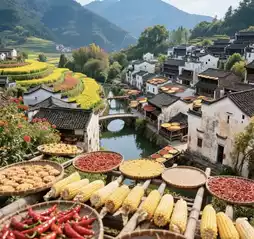 ◦ At dawn, Huangling’s drying racks brim with summer peppers and corn—a vibrant farmer’s palette of red and yellow.
