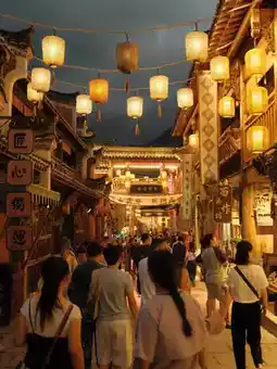 From the glowing old streets to the houses on the cliffs — every corner of Wangxiangu lights up differently at night.