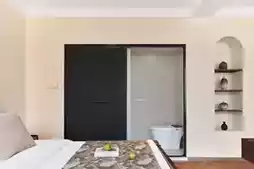 You’re hooked the moment you walk in! The common area features retro leather sofas and wooden tea tables, with artistic paintings on the walls and vintage lamps in the corners, every detail exudes the refined “old money” vibe. I stayed in the vintage king room, with herringbone wood flooring that feels super upscale, a curved soft headboard with built-in soft lighting, and bedding made of skin-friendly pure cotton. The zebra-striped bed runner is both cool and retro. At night, lying down watching the projector, the “atmosphere” is permanently sealed in the room!