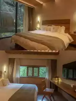 The 270° panoramic suite is also amazing, pull the smart curtains open and the canyon waterfall crashes right into your view, when the mist rolls in it feels like cultivating immortality~
