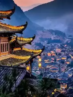 wangxiangu is a popular tourist destination in Shangrao, Jiangxi province, known for its dramatic cliffside houses, waterfalls, and ancient-style villages. The valley is particularly famous for its enchanting and vibrant nighttime scenery, often compared to a "real-life fairy tale". The most iconic feature of Wangxian Valley is the cluster of traditional wooden houses that are built directly onto the high, sheer cliffs. This unique style, with its stunning views over the valley, creates a truly magical atmosphere when lit up at night.