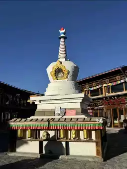 First, we came to the prayer wheel square in Shangri-La, where colorful prayer flags fluttered in the wind, creating a spectacular visual effect🎉. Standing under the prayer flags, looking up at the blue sky and the colorful prayer flags intertwined together, you can feel a kind of spiritual peace and blessing✨. This is a place to take great photos and get tons of likes on social media 👍.