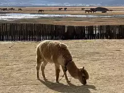 There are alpacas, dogs, ducks, horses, goats and more for us to play with and take pictures with. There are many people wearing Tibetan clothing to take pictures with. They are so cute. The atmosphere is very chill.