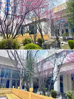 The hotel also has an outdoor courtyard that provides a place to rest, and you can also enjoy the colorful peach blossoms. The hotel also has an Instagram-worthy indoor courtyard, which is a good place for taking pictures or casual chats.