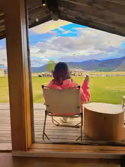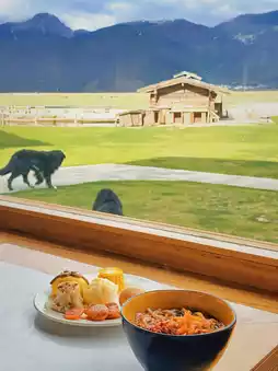 In the morning, goats would come right up to the cabin door, acting all familiar—munching on grass while nudging you affectionately. During breakfast, we even saw the Hong Kong owner shooing mischievous goats out of the yard, their curious peeking making them unbearably cute 😆.