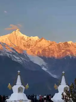 🌄 Dukezong Ancient Town – Cobblestone streets lined with prayer wheels and yak butter tea houses.