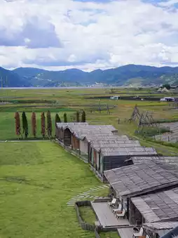❸ Floor-to-ceiling windows offer breathtaking views of the vast grassland and snow-capped mountains