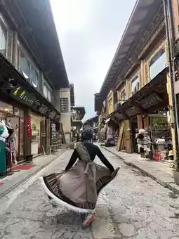 At the heart of the town, the main square hums with life — you might stumble upon a spontaneous Tibetan dance or the hypnotic sound of traditional drums. And here’s a must-do: try on a traditional Tibetan costume for a photo. The rich colors, intricate patterns, and bold accessories make you feel like you’ve stepped straight into a Himalayan folktale — and your pictures will be just as magical as the place itself.