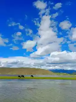 🦢 In June, the water reflects white clouds, and horses willingly pose as models