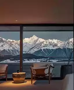 🏨 Must-stay for snow mountain views (top choice for family warmth):