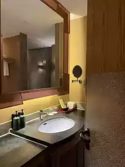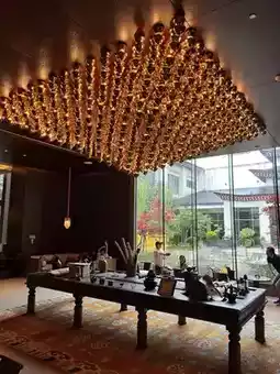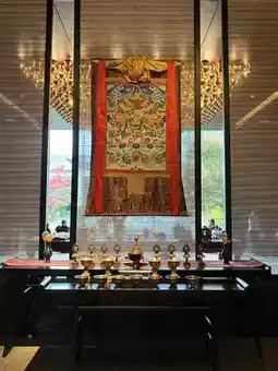 The hotel's ambiance lives up to expectations. Upon entering the Shangri-La Hotel, one is immediately captivated by its serene yet elegant atmosphere. The lobby's design blends Tibetan culture with modern elements, featuring wooden structures and warm lighting that create a dignified yet cozy environment. The central art installations and exquisite furnishings transport guests into a distant yet familiar "Shangri-La" legend.