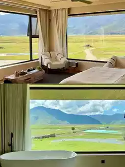 🔸The amenities are thoughtful and high-end! Oxygen machine, floor heating, humidifier all included💦, even if you have altitude sickness, you can sleep soundly with the oxygen machine; the room is spotless, equipped with a Dyson hairdryer, imported toiletries🧴, five-star quality bedding, Marshall speakers, and a window-side bathtub🛁—soaking while watching the grassland view, the experience is fully elevated upup~