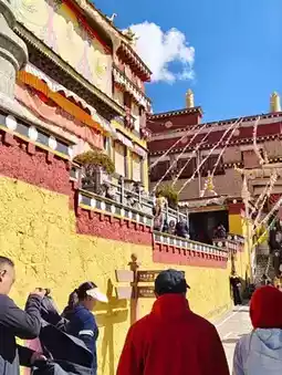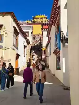 However, if you're able to climb, it's worth it. The 75-yuan ticket includes both the shuttle bus and monastery entrance fee. The architecture at the top is beautiful, Tibetan-style, and makes for stunning photos.
