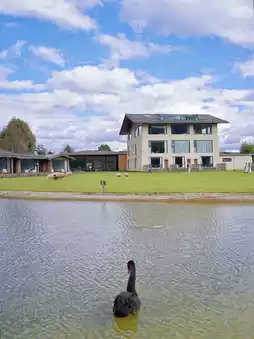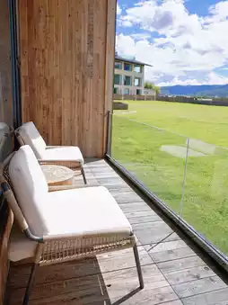 Rooms with floor-to-ceiling windows facing the grassland and wetlands