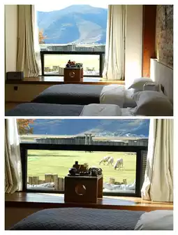 • Floor-to-ceiling windows with views of snow-capped mountains and grasslands