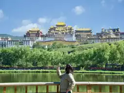Choose red Tibetan robes with silver accessories, or white and ginger-yellow long dresses, simple yet photogenic. Props like prayer wheels and Gesang flower bouquets add Tibetan flavor. The best shooting times are early morning from 7-9 am (misty warm light) and evening from 5:30-7:30 pm (golden sunset glow). Shoot with front light for clear panoramic views, and backlight to outline the figure, easily creating high-quality photos.