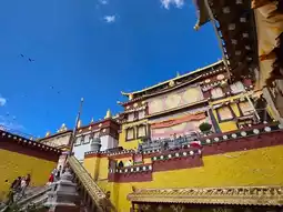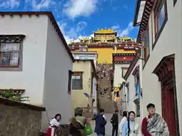 Today's itinerary wasn't tight. We mainly went to one place: Songzanlin Monastery, or Little Potala Temple. It's a replica of the Potala Palace in Tibet. It's a beautiful temple on a mountain. Unfortunately, they don't allow photography inside the temple. The Buddha statues are truly magnificent, and you can only take photos outside. The Chinese sisters here are all dressed in traditional makeup and beautiful costumes. At first, I talked to Noon about wearing traditional costumes when I arrived, but when I arrived... I was too lazy. 😄😄 After the temple, I didn't know where to go, so I went to a coffee shop with a beautiful view. It's located in the Shangri-La Ten Miles Snow Hotel. Outsiders must order one drink per person. The view is truly beautiful, and the coffee is expensive and not delicious. 😄 (The Americano was dark roasted, ordinary, and had no aroma or flavor.) It cost about 265 baht per cup. I hadn't finished it yet, so I walked over to take photos. When I returned to my table... oh, I'd already put my cup away, even though my belongings were still on the table. It was very windy here. We sat and enjoyed the breeze for a while before leaving. I was still thinking, Will I get sick with round eyes like this? In the evening, Noon couldn't survive. Her face and eyes were heavy and her body was hot, so she gave me paracetamol and fell asleep quickly...end of day 4. Oh...for dinner, I wanted to eat yak meat hot pot, but I went to the wrong restaurant. My life changed...it was the most unpalatable meal. 😅