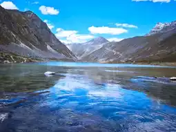The lake's water is an incredible shade of indigo, so clear it resembles a mirror. Surrounded by snow-capped mountains and lush grasslands, the scenery is breathtakingly beautiful. During summer, the lake reflects the blue skies and white clouds, creating a serene and healing atmosphere that feels like stepping into a hidden paradise! 😌✨