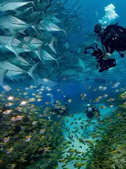 • Unique underwater landscapes such as Wonder Reef, the world’s first buoyancy reef dive, featuring giant flute-shaped sculptures and abundant marine life.