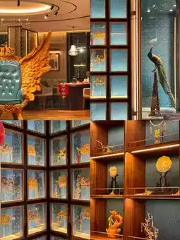 Every decorative detail in the hotel, from the vintage tables and chairs to the dazzling array of phoenix corona paintings, quietly standing alongside peacock ornaments, all whisper about the bustling comings and goings of people in those days.