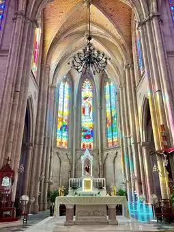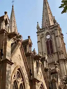 Construction began in 1863 under the guidance of French architects and was completed in 1888, taking 25 years to finish. The cathedral features twin towers reaching 58.5 meters, a nave flanked by side chapels, and 98 stained glass windows depicting biblical scenes. Notably, Chinese craftsmanship is evident in elements like the use of glutinous rice mortar and lion-shaped water spouts .