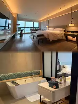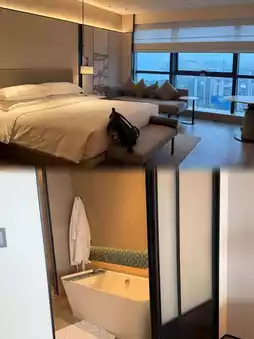 The room truly exceeded my expectations. Upon entering, I was greeted by a huge window—when I opened the curtains, the view outside was breathtaking. The room features a modern yet cozy design. The bed was incredibly soft; when I lay down, I felt like I was sinking into it—so comfortable. The room's thoughtful details were impressive, such as the high-quality toiletries that were very pleasant to use, and complimentary mineral water, showing how attentive the hotel is. I particularly loved the smart control system in the room, which allowed me to control the lights and curtains with my phone—very high-tech and made staying there feel extra luxurious.