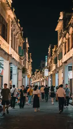 📸 Night scenes are stunning! Red corridor pillars + vintage light signs are perfect for photos✨