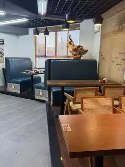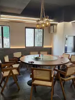 The ambience of the restaurant is cozy. It blends traditional Chinese charm with a comfortable, casual dining setting. The decor features illustrated murals depicting old-style street scenes and family cooking moments, evoking the atmosphere of classic Chinese towns.