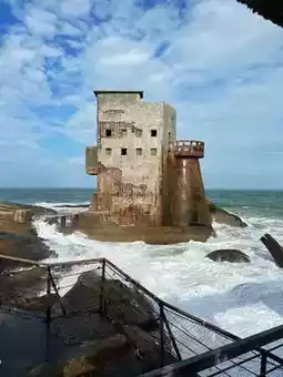 It feels like Jeju Island, with a wide sea and high waves, giving it an overall grand feel. There is a Looking Float cafe next to it, with a glass window facing the sea, perfect for taking pictures.