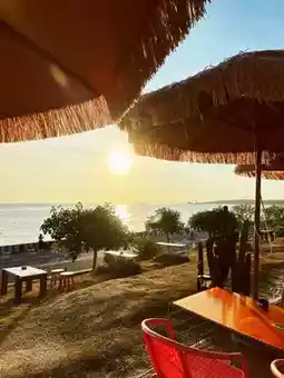 There is a wooden bridge connecting to the sea, which is suitable for taking pictures. The sea water is very clear and the waves are not big. You can also see rows of windmills in the distance.